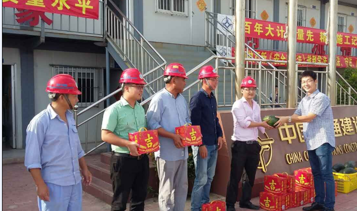 夏日炎炎,酷暑難耐。股份公司工會在珠海大橫琴集團工會的指導下,本著“以人為本、關愛職工”的精神,以關心職工的工作和生活為出發點,積極策劃、周密安排,多方籌資,迅速啟動一系列“夏送清涼”慰問活動。為保證此項活動的順利展開,6月底,集團工會專門下發《關于開展“送清涼”慰問活動的通知》,由工會統一部署,在全公司各項目工地廣泛開展了“關愛職工,夏送清涼”活動,向一線工人贈送西瓜、涼茶,講解防暑、降溫知識。
